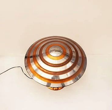 Pair of Art Deco lamps in chrome and copper metal, glass details. Italian Production, 1930s.