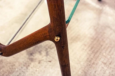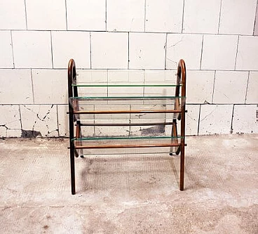 Magazine rack with wood and glass structure, brass details. Designer Ico Parisi, italian production, 1950s.