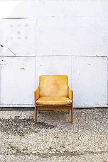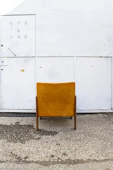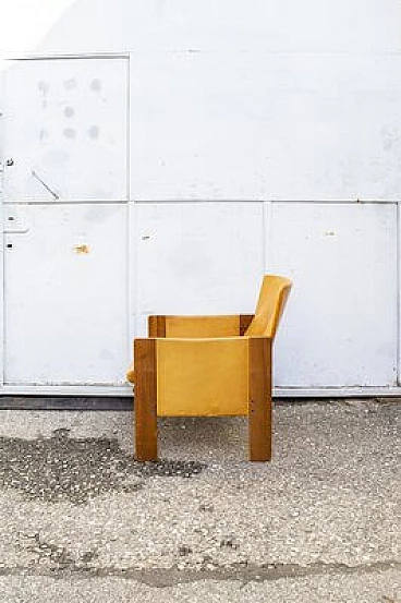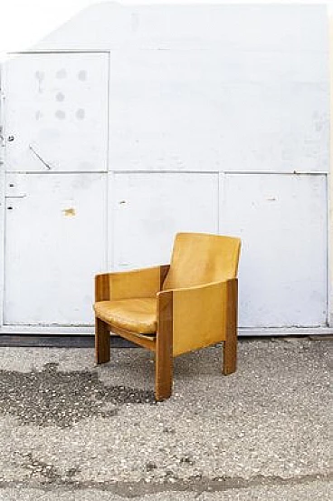 Lounge chair with wooden structure, padded leather padding. Model 917. Designer Afra and Tobia Scarpa, manufacturer Cassina, 1963.