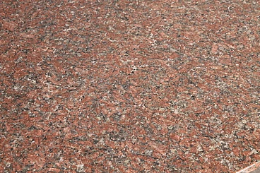 Mid-century round table with pink granite top and brass details, Italy, 50s