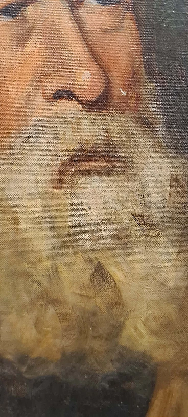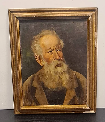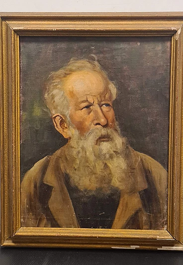 Oil portrait on canvas of a bearded man. Refined portrait depicting probably, seen the simple clothes, a man of humble origins with a thick beard. The portrait is unfortunately not signed but from the canvas can be placed at the end of the nineteenth century. Note the care with which the complexion and wrinkles of the face were performed. The painting is in a good state of conservation, as can be seen from the back of the painting, the canvas is applied on board. Height 58 cm; width 45 cm. Measures with frame: height 72 cm, width 59 cm.