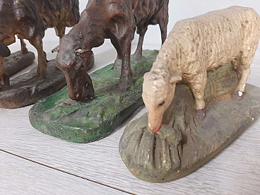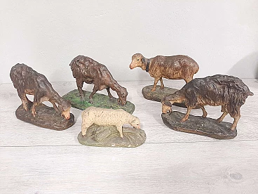 5 Nativity scene figurines in plaster and paper, late 19th century