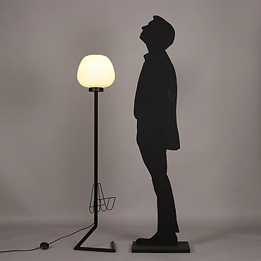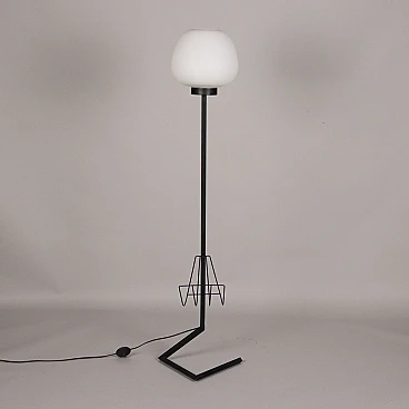 Enamelled metal and glass floor lamp with magazine rack, 1960s