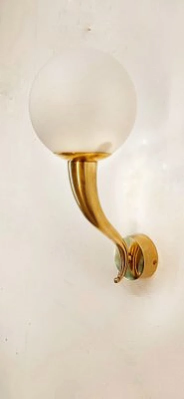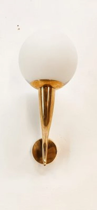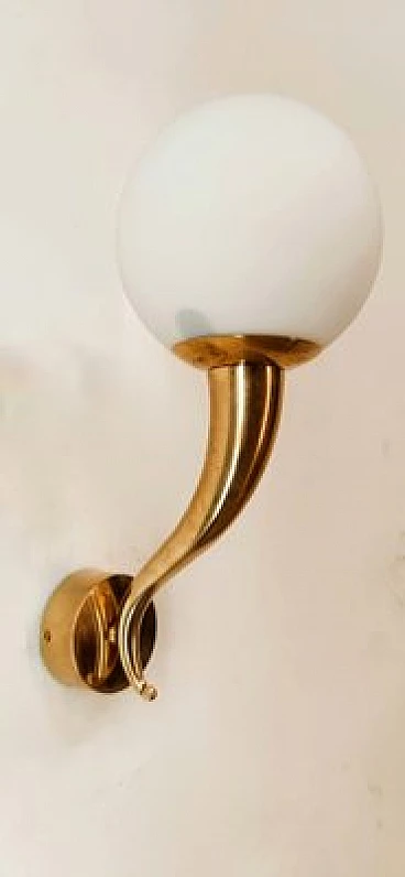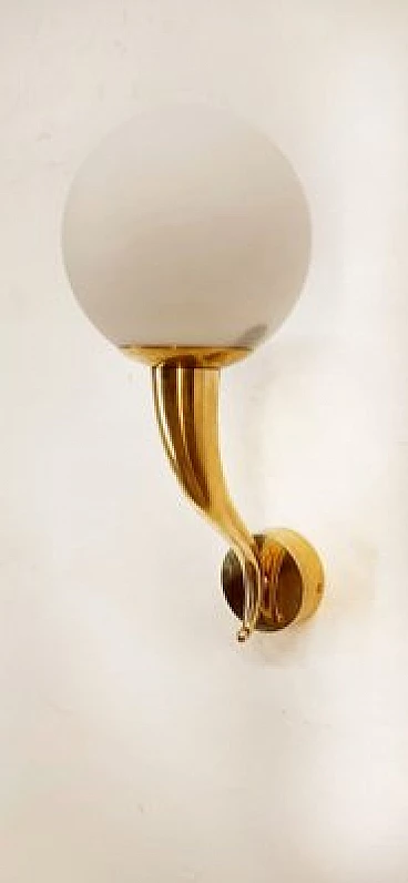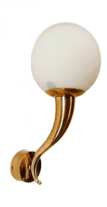 Brass and white glass wall light, 1970s