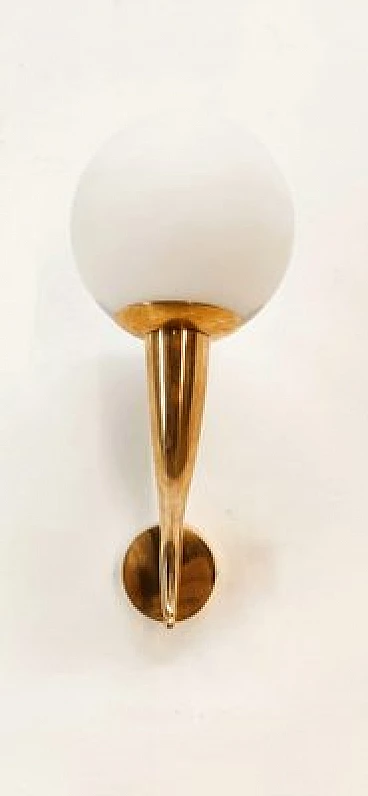Brass and white glass wall light, 1970s 4