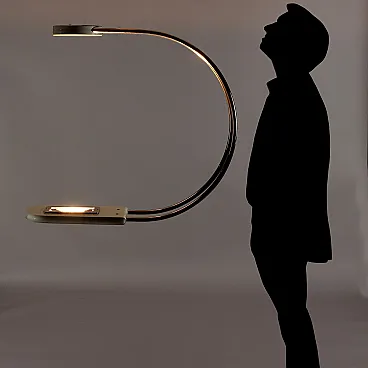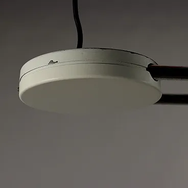 Ceiling lamp with reflected light. Made of chrome-plated tubular metal and enamelled aluminium.