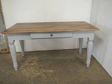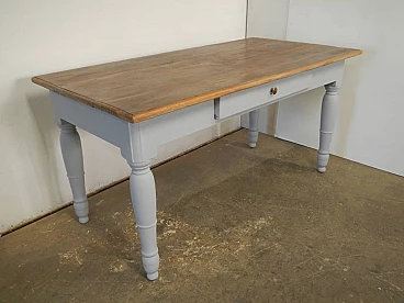 Grey varnished and natural chestnut table with drawer, 1950s