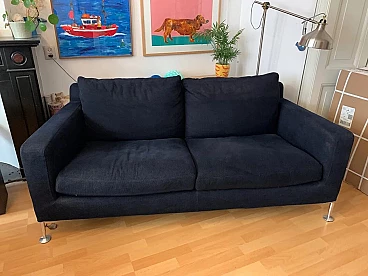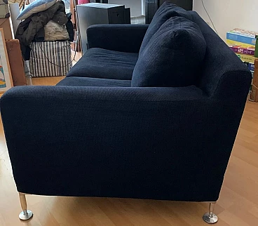 2.5 seater Harry sofa (mod. Harry 175) by Antonio Citterio for B&B Italia. Sofa with a comfortable posture, made of refined, soft Maxalto blue velvet. Good condition, well maintained; minimal signs of use. Cold-formed polyurethane structure with differentiated zones, upholstered with a special top-of-the-line fabric in soft, comfortable dark blue velvet of extreme tactile fineness and luxury. The cushions are filled with Belgian Fill feathers. It has distinctive, modern flared feet in die-cast aluminium with Lem studs. The seat cushions are beautiful and compact. Seat height: 45 cm.