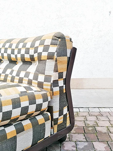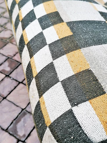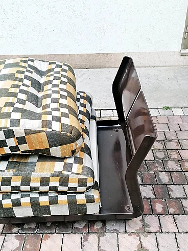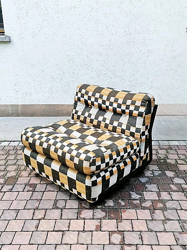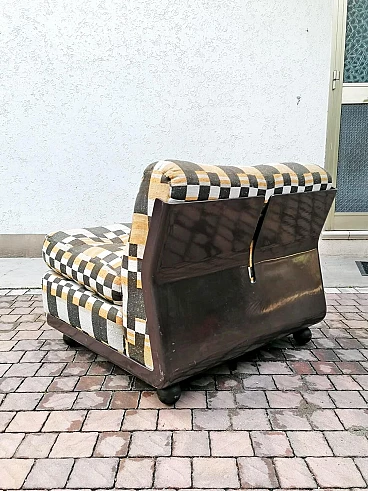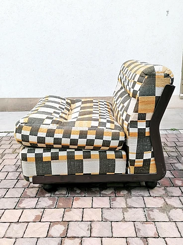Amanta modular armchair by Mario Bellini for B&B Italia, 1970s. Moulded Fiberlite shell with moulded polyurethane foam cushions covered with beautiful coloured chequered fabric original of the period. Spherical rubber feet, the same as those used on the Camaleonda and Pianura models. These armchairs can be combined to form a sofa of variable length. It is in very good vintage condition, as shown in the photo. No cracks or defects worth mentioning, just a few normal, slight marks due to time and use. Embossed mark under the shell with the name of the manufacturer, model and designer. Fabric label with all production data and test date (1974) also present.