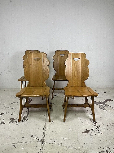 4 Carved wooden chairs, 1960s