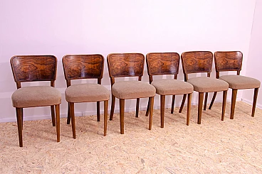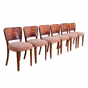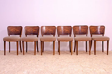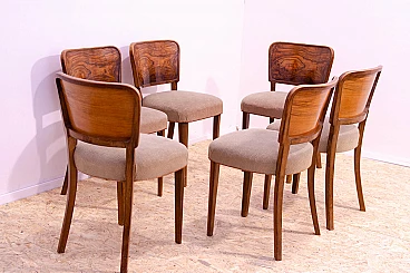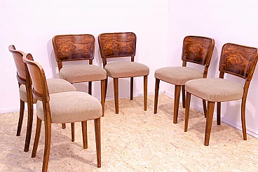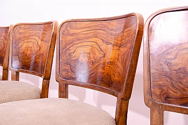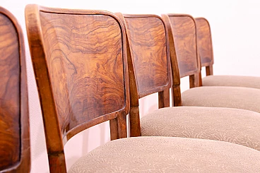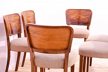 6 Czechoslovakian Art Deco walnut and fabric chairs, 1930s