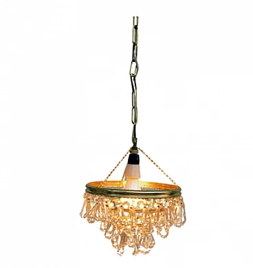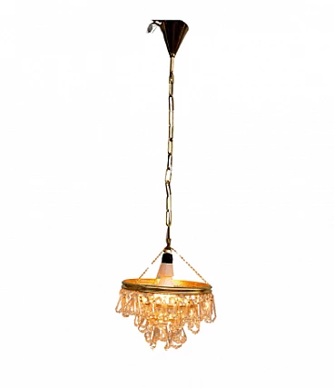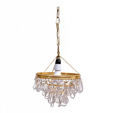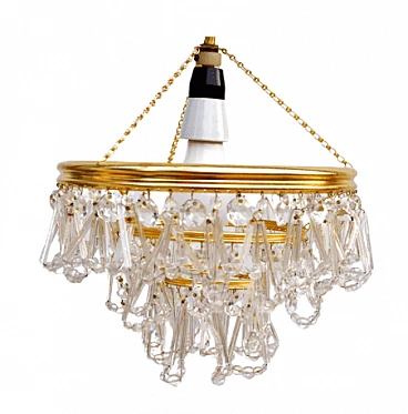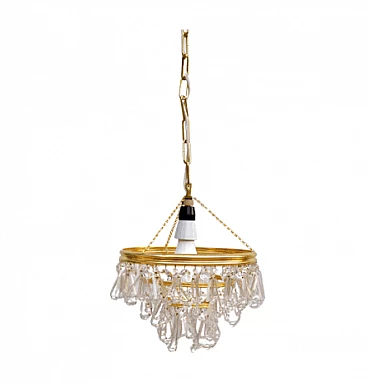 Brass and crystal chandelier by Lustry Kamenický Šenov, 1970s