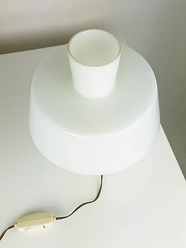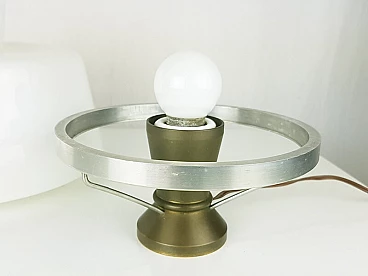 Brass and aluminium table lamp with opaline glass shade, 1950s