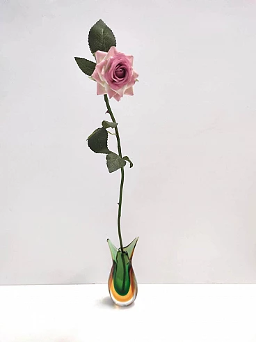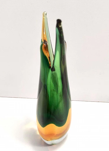 Green and orange submerged Murano glass vase by Flavio Poli, 1950s