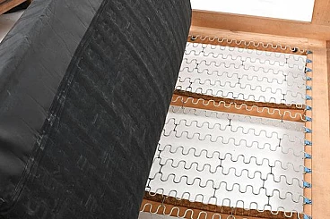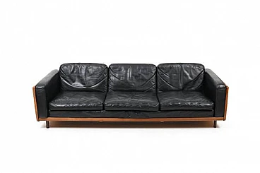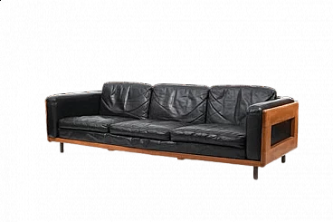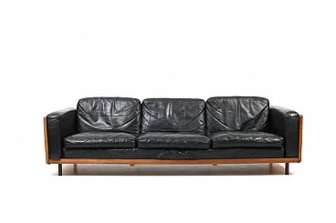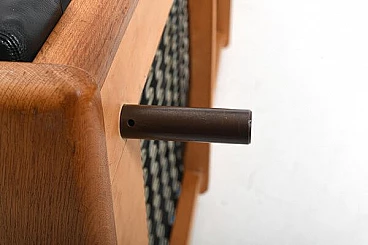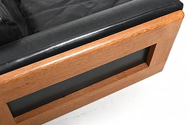 Danish solid oak and black leather sofa, 1960s