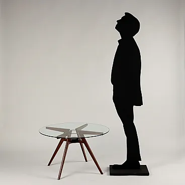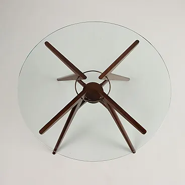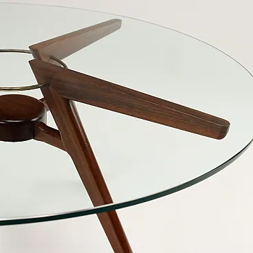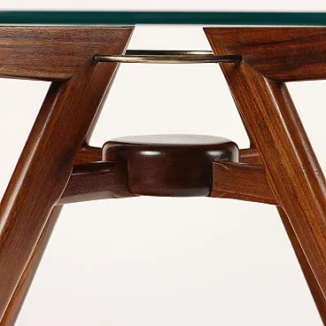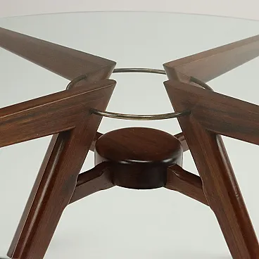 Argentinian stained beech, brass and glass coffee table, 1950s