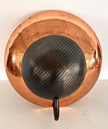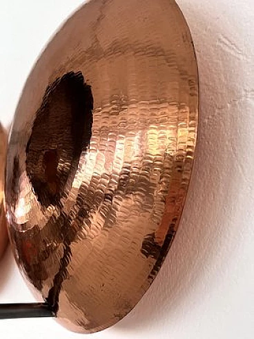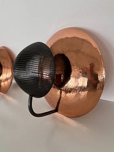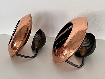 Pair of hammered copper and black perforated metal wall lights, 1970s