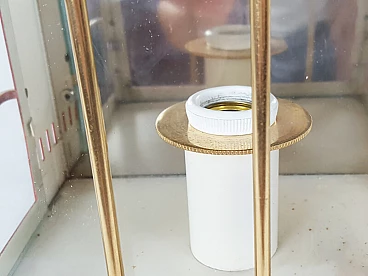 Red metal, brass and glass wall lamp, 1950s