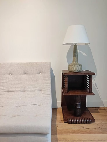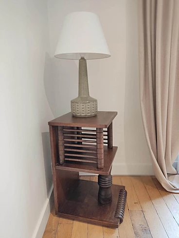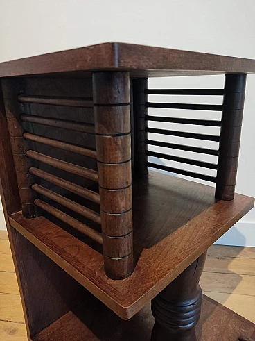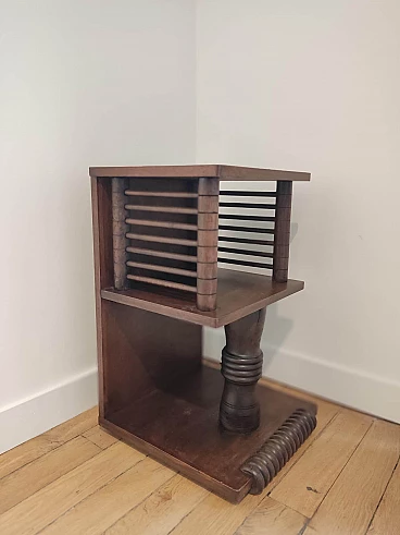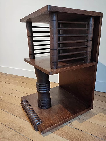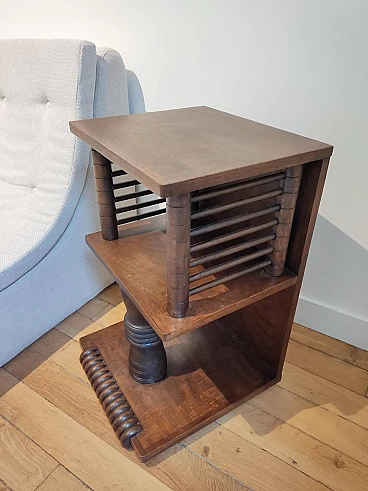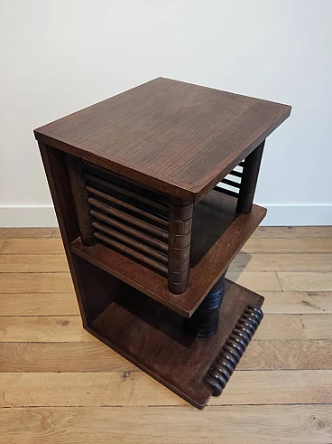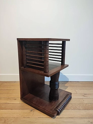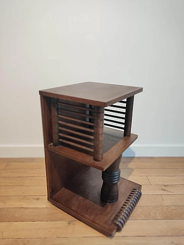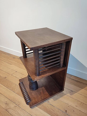Regionalist coffee table or bedside table attributed to Charles Dudouyt. Very beautiful woodwork. The different geometric shapes remain very modern while retaining this craftsmanship.