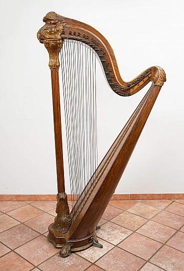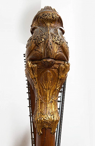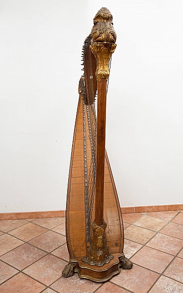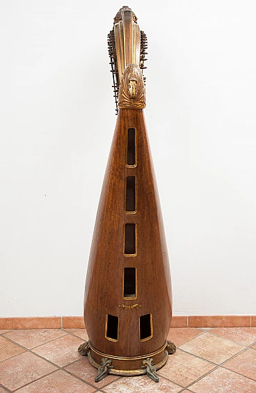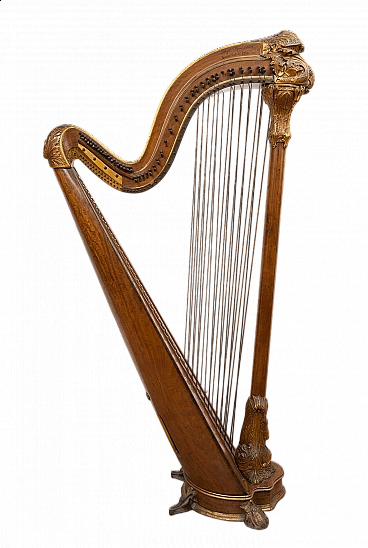 This type of harp was devised by Gustave Lyon in 1894-95, he abolished the pedals and assembled the instrument with the full set of tuning strings and crossed the strings to save space. Origin: 19th century France. Excellent overall condition, strings missing. Measurements: 60x100 cm, H 190 cm. Certificate of Authenticity. We are at your disposal for further clarifications or photographic details. Shipping throughout Italy, Europe and the rest of the world at very low prices with maximum security and traceability. Shipping will be agreed privately.