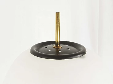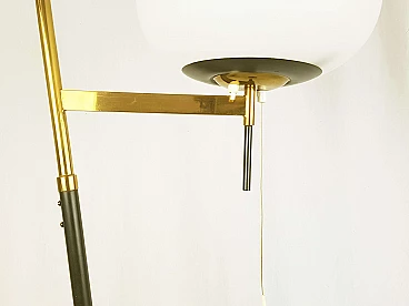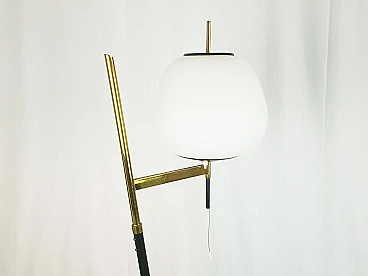 Glass, black metal and brass floor lamp attributed to Stilnovo, 1950s