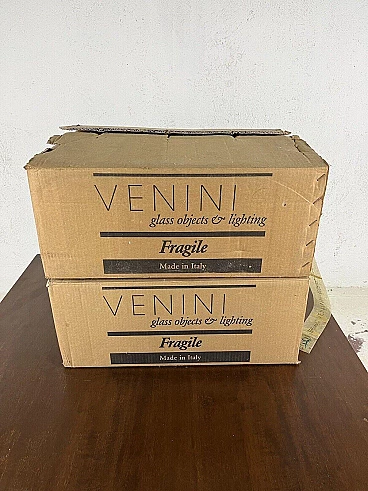 Pair of corner wall lights in Murano glass, Vinkboi model, manufactured by Venini from the 1990s. The pair of wall lights is new from stock, still to be assembled, intact in every part.