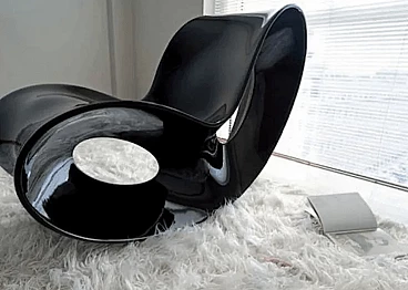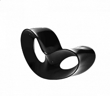 Glossy black Voido rocking chair by Ron Arad for Magis. Sinuous and contemporary lines give life to this rocking chair. A true work of modern art, much more than contemporary with a romantic aftertaste. It is made of polyethylene therefore suitable for internal and external use. Designed in 2006 by the Israeli designer Ron Arad, it is available in matt and glossy lacquered versions (here glossy). It is a piece of furniture with a great impact, extremely versatile and yet of great design complexity.