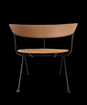 Officina chair in iron and leather by Ronan & Erwan Bouroullec for Magis. The Officina collection explores the possibility of establishing a new creative language while working with an ancient manufacturing process such as iron forging. The collection includes tables and coffee tables, chairs, armchairs, stools, benches, a series of accessories and upholstered furniture. All these pieces are characterized by a forged iron structure with the allure of a raw material handed down over the centuries, alive, with those slight imperfections that make each piece of this collection unique, with an unmistakable industrial flavour, but combined with a profoundly refined and elegant. The chair has an iron structure with leather seat and back. Ronan & Erwan Bouroullec, born in 1971 and 1976 respectively, in Quimper, France, studied at the École Nationale des Arts Décoratifs in Paris and the École des Beaux-Arts in Cergy-Pontoise. Since 1999 both brothers have worked together as joint partners in their own Paris-based design studio. Their work ranges from small utilitarian objects to architectural projects. In addition to the design of furniture and various home accessories, the focus of their work is the design of the interior space. They have collaborated with major design companies such as Vitra, Cassina, Artek, Magis, Alessi, Established & Sons, Flos, Kvadrat, Glas Italia, Kartell, Kettal, Iittala, Cappellini, Ligne Roset, Nani Marquina, Mutina, Samsung and Hay. The designers' creations are part of permanent collections of selected international museums and several exhibitions have been dedicated to their works. These include the Design Museum in London, the Museum of Contemporary Art in Los Angeles, the Vitra Design Museum and many others.