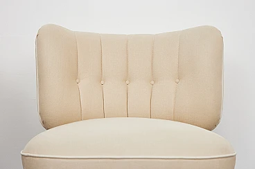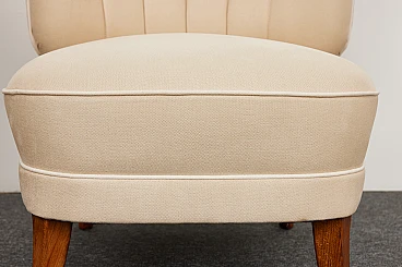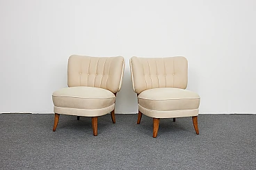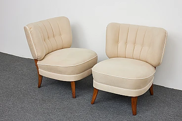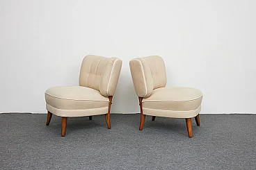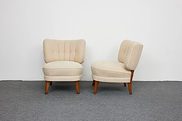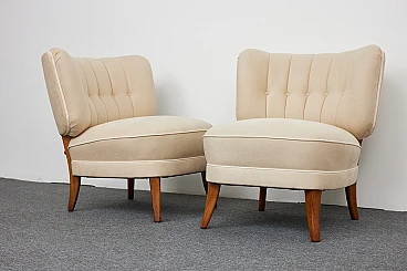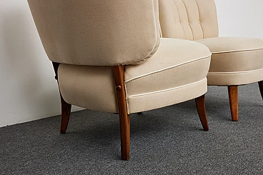 Pair of armchairs by Otto Schulz for Jio Möbler (Sweden), 1930s-40s. Wooden legs and beige fabric upholstery made in the 1970s.