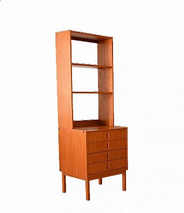 Teak bookcase with drawers by Bertil Fridhagen for Bodafors, 1964. It combines elegance and practicality. In the lower part, four drawers with handles carved directly into the wood provide space to discreetly store various objects, while the upper part features two adjustable shelves, ready to hold books and decorative objects. The clean, functional design remains true to the Scandinavian minimalist style, with clear lines that emphasize the quality and natural beauty of the material. Good condition; a conservative restoration with natural products has been carried out. It may show some signs of time. Pay attention to photographs for more specific details.