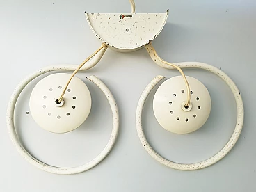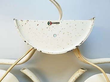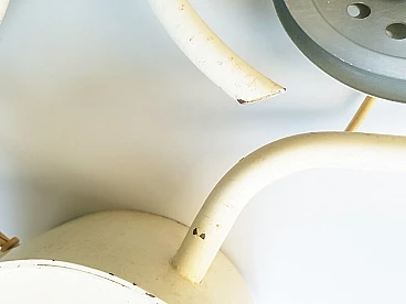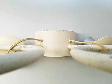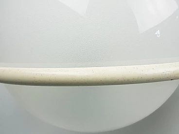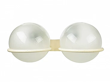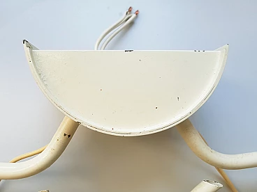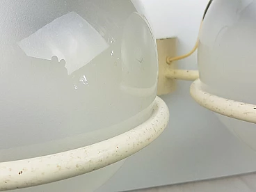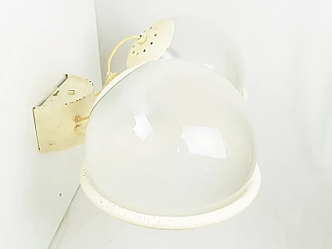 Wall light mod 238/2 by Gino Sarfatti for Arteluce, 1960s. White painted metal structure and sandblasted glass shades. Fair condition: the metal structure shows visible signs of oxidation and some paint lacks as highlighted in the photos. The metal structure has been cleaned to remove as much as possible oxidation spots and equalize the condition; original varnish maintained and tending to ivory color. The most damaged part is the upper one, usually less visible; the lower part remains in better condition overall, as shown in the pictures.