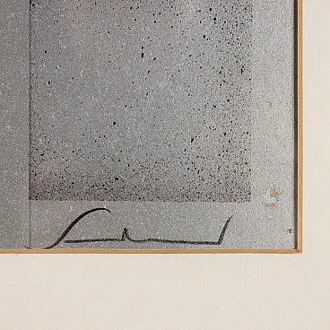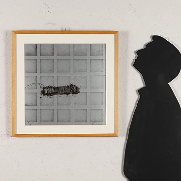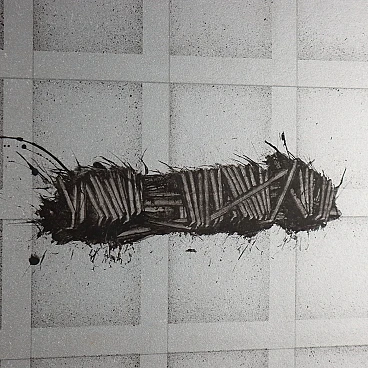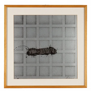 In 1954, the stylised knot began to appear in his canvases, which became his hallmark, characterising all his subsequent production. In the production of the 1970s, to which the work presented here belongs, the 'knot' becomes perfectly delineated and recognisable, declined in disturbing shapes, sometimes threatening and stained with blood red. The work is presented in a frame.