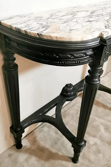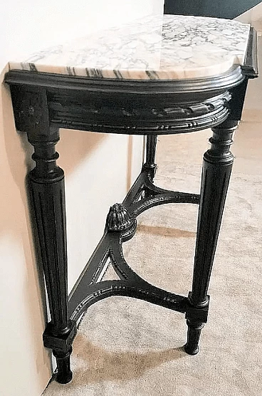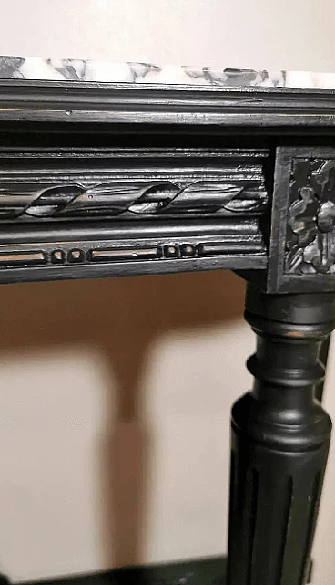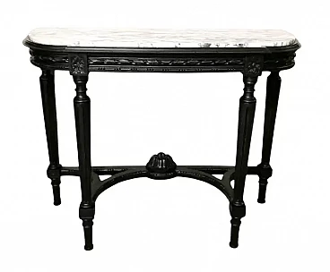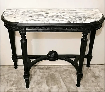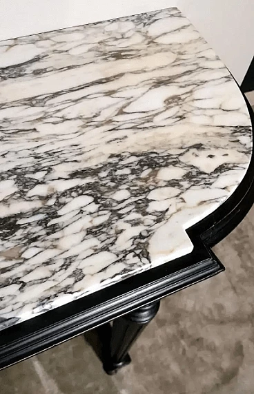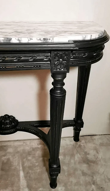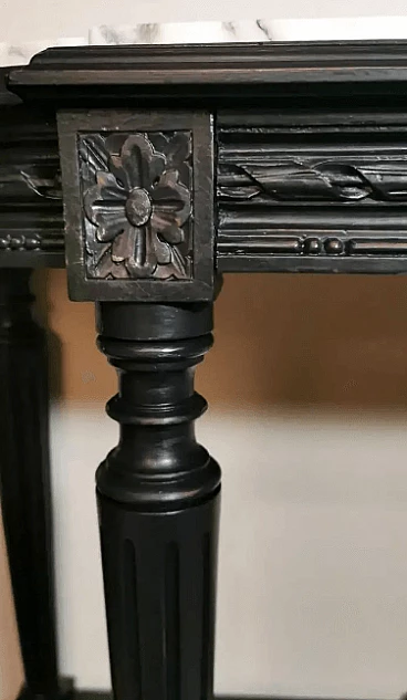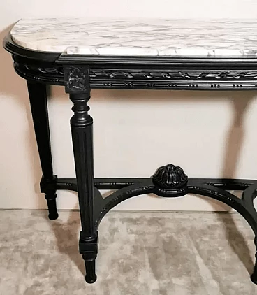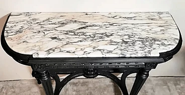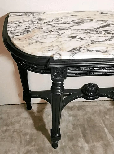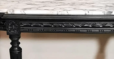 Napoleon III style French console table in black wood and Carrara arabesque marble, 19th century