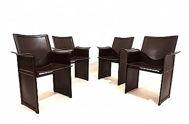 4 Matteo Grassi Korium leather dining chairs by Tito Agnoli, 1970s