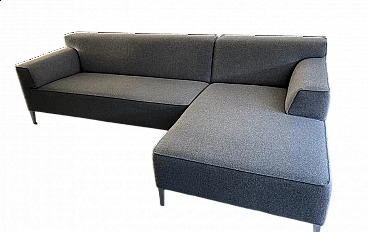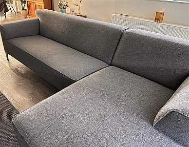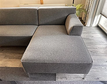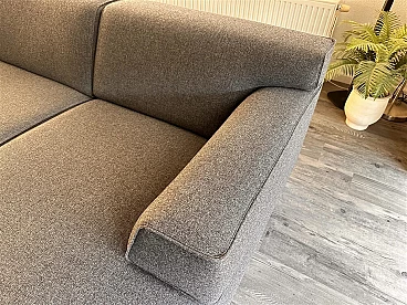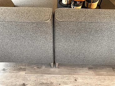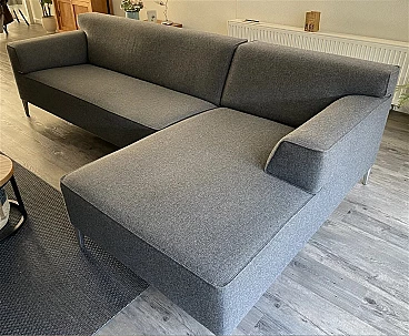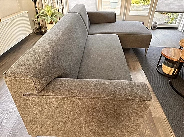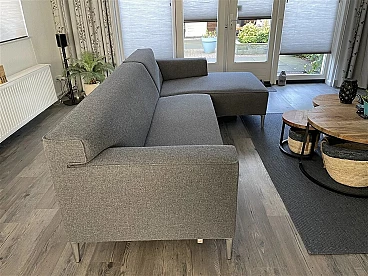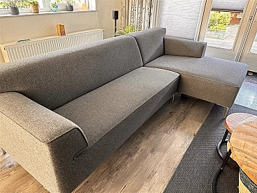 Beautiful and refined Insert sofa in taupe wool and cotton. Jet Dircks design, Pode production 2008. Excellent state of preservation. A few months old. As shown. Minimal marks on the fabric. The sofa has been used very little in a holiday home. Always covered with a towel at the end of the holidays. The legs are very elegant with a tapered shape in chromed aluminium. Very high quality sofa. Produced by skilled artisan hands in the Pode laboratories. Famous Dutch high-end upholstery company. The sofa has a covering in very soft virgin wool and cotton, in a Taupe Gray finish with mixed yarns with a light dark effect. Elegant and refined visible double stitch stitching with raised Kvard thread. Extremely elegant corner composition. Price of the new sofa in wool and cotton 6950 euros. Planimetric overall dimensions: width 284x158x H 77-79 cm, seat height 40-42 cm.