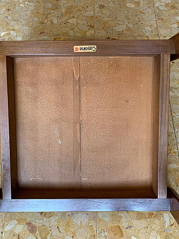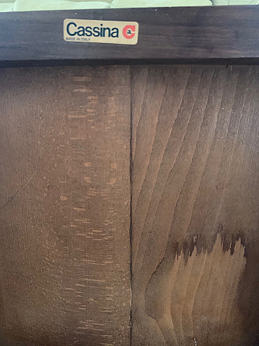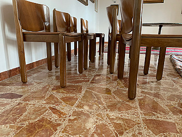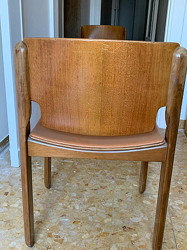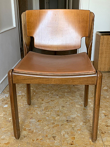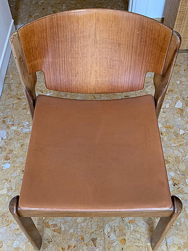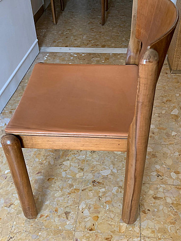 Set of 8 chairs model 122 designed by Vico Magistretti in 1967 and made by Cassina. The wooden frame with leather upholstered seat and curved wooden backrest. The chairs are perfect to furnish in vintage style.