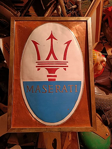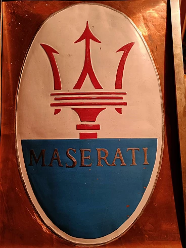 Metal Maserati sign by G. Motivo, 1970s
