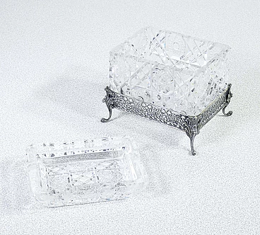 Crystal and 800 silver ashtray and cigarette case by Argenteria F.lli Passera, 1950s