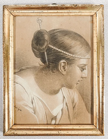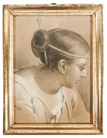 Antonio Barberis, Portrait of a Woman, pencil on paper, 19th century