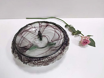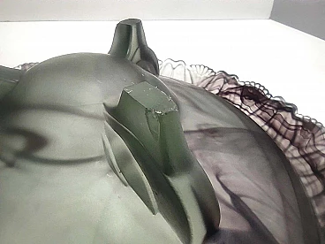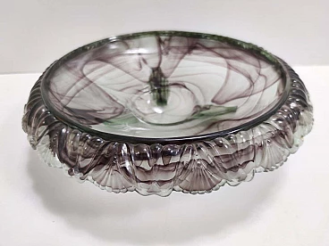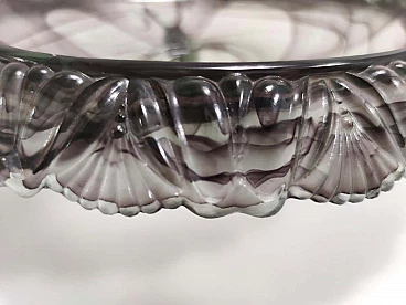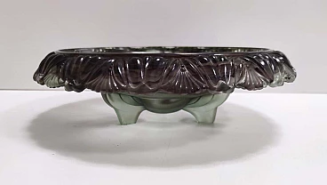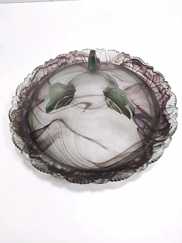 Produced in Germany by Walther and Sohne of Radeberg, 1930s-1940s. The company was known for producing high-quality pressed glass. Some of their stained glass has been attributed to Sowerby of Gateshead. Walther sold its Cloud glass under the trade name ORALIT. The name is reminiscent of Davidson's ORA Red Cloud glass. It is unclear whether there was a commercial relationship between the two companies. It is more likely that Walther was trying to associate its products with Davidson's well-established Cloud glass range. The Oralit range appears to have been started in 1932, a few years after Davidson's introduction of ORA. The three-foot bowl has a smooth interior and an intricate moulded rim. It most likely had a central pelican-shaped element. This bowl is normally found in Cloud Glass without the central piece, like ours. As it is a period piece, it may show slight traces of use, such as a small defect on one foot, but overall it can be considered to be in excellent original condition and ready to become a household piece. Diameter 30 cm, height 9 cm.