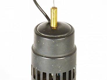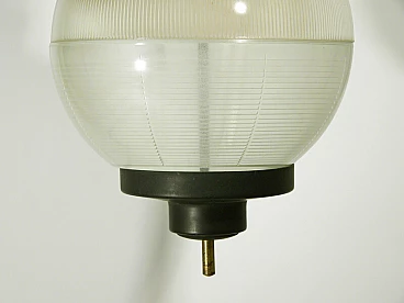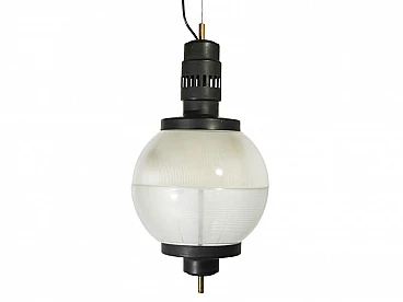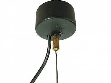 Aluminum and brass pendant lamp with printed glass shade in Azucena style, 1950s