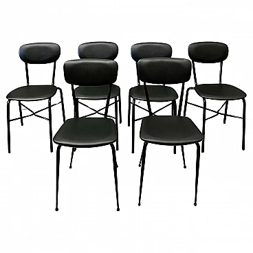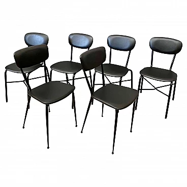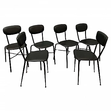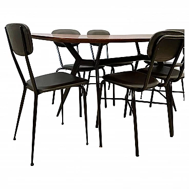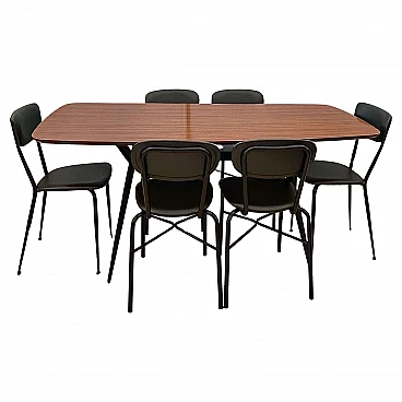 6 Chairs and table in formica, iron and eco-leather, 1960s