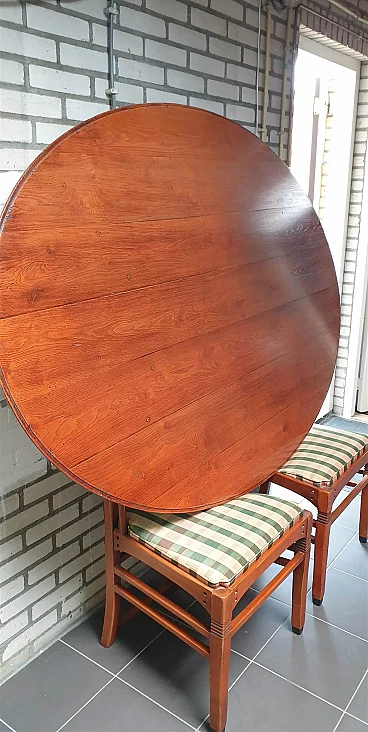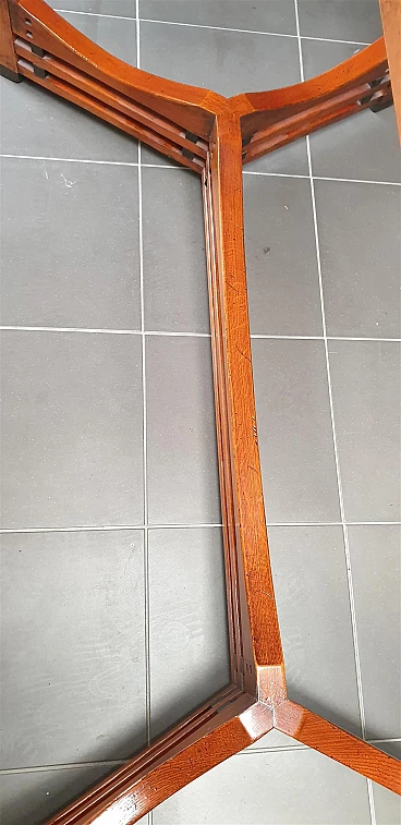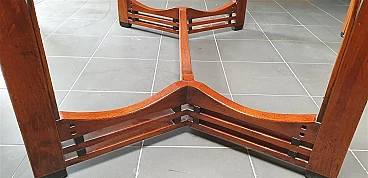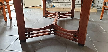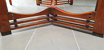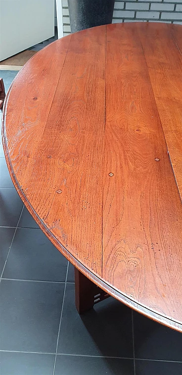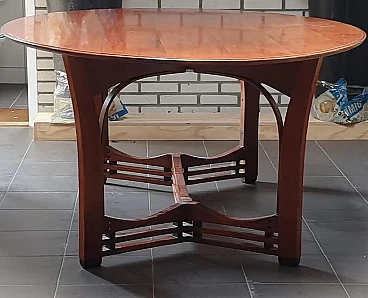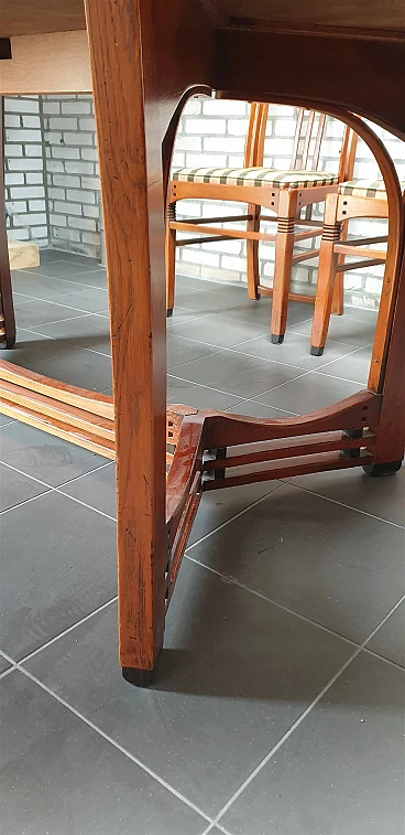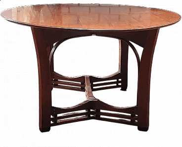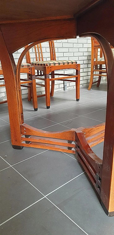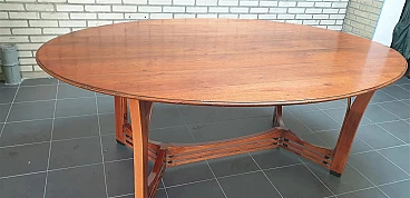 Gustave oval table from the Jugendstil Decoforma series by Frits Schuitema for Schuitema, 1960s-70s. Very good condition with minimal signs of use. Made of solid Slavonian oak; four-wing base, relief-edged top composed of boards bayonet-fitted horizontally to each other. Great work of craftsmanship and high cabinet-making with finishes on the feet and structural base. Furniture made of interlocking and contrasting wooden dowels in darker wood type. Cherry wood finish. Top thickness: 2.5 cm. The Decoforma collection is unique in its kind, for the very high construction quality, the choice and selection of materials used in the furnishing products. Frits Schuitema designer furniture is inspired by the design classics of Charles Rennie Mackintosh and Frank Lloyd Wright. The furniture from the Jugendstil series is handmade based on a design by Frits Schuitema himself. They are inspired by timeless, elegant lines combined with a touch of classicism. The Schuitema collection represents the highest segment of Art Deco/Art Nouveau furniture. With the name of Jugendstil, art historians indicate the experiences conducted in Germany and Switzerland in the context of Art Nouveau. The term Jugendstil was inspired by the title of a magazine published in Munich, Germany, Jugend, founded in 1886. Jugend can be translated as "young", so Jugendstil can be interpreted as "New Style". The magazine published many works by contemporary authors promoting the Art Nouveau language of graphics and applied arts. Finally, the magazine Insel used the term Jugendstil in an article for the first time.