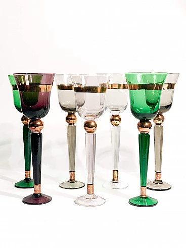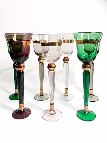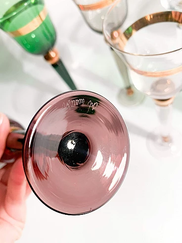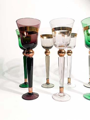 7 Multicoloured Murano glass goblets by Venini, 1950s