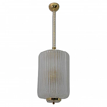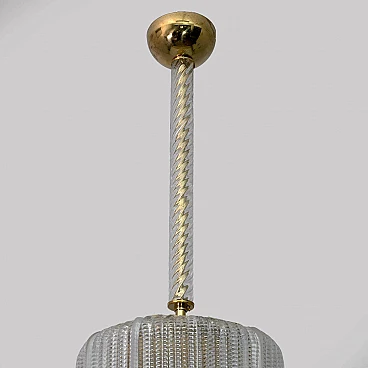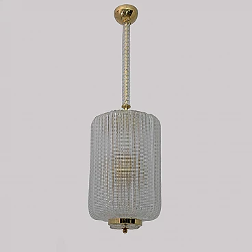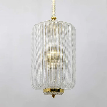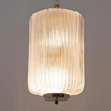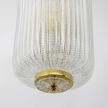 Art Deco style brass and Murano glass lantern chandelier attributed to Tomaso Buzzi, 1980s