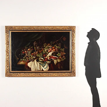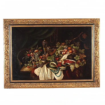 Still life with fruit and tableware, oil on canvas