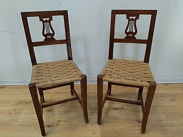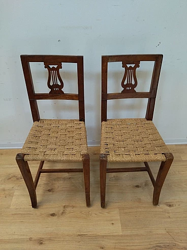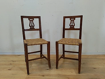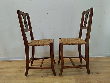 Pair of Empire solid walnut and straw chairs, early 19th century