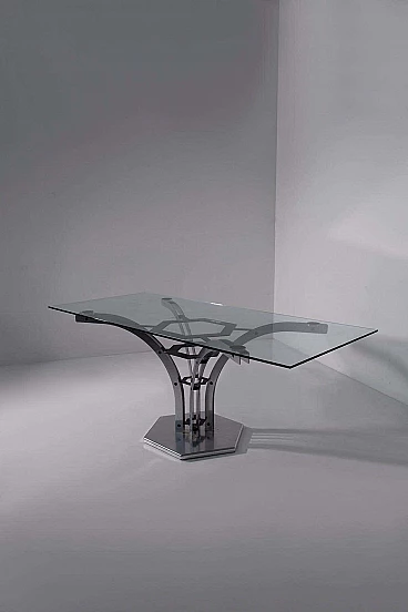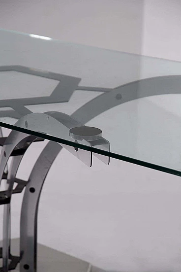 Enter the fascinating world of Italian design with this striking geometric table from the 1970s and early 1980s. Its elaborate pedestal boasts an awe-inspiring technical precision, inviting you to explore its intricate details.