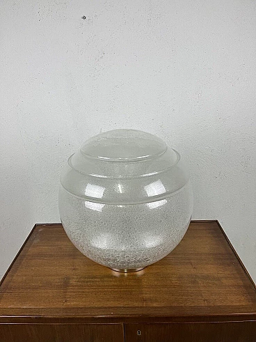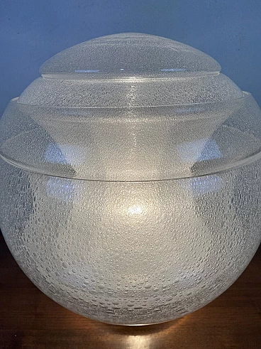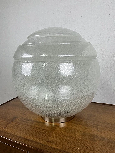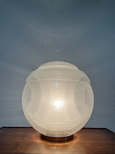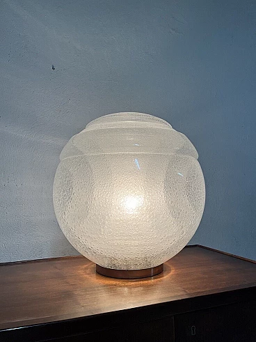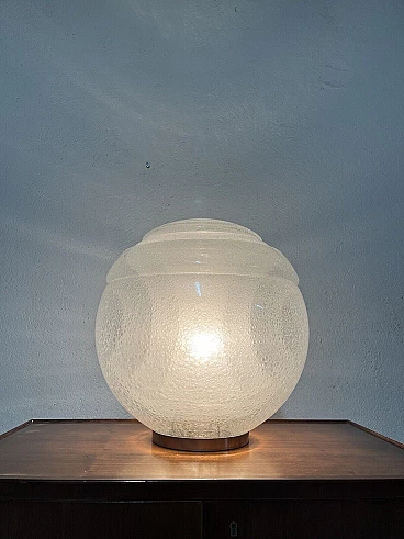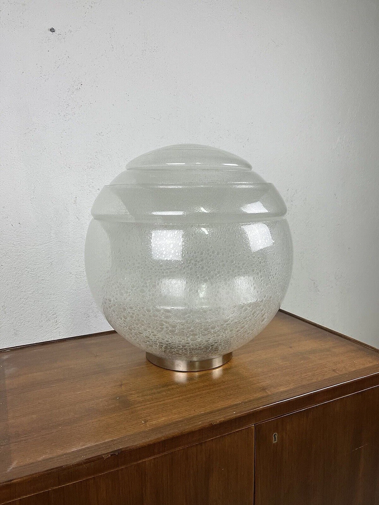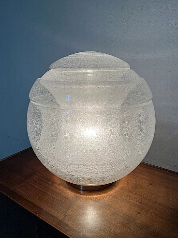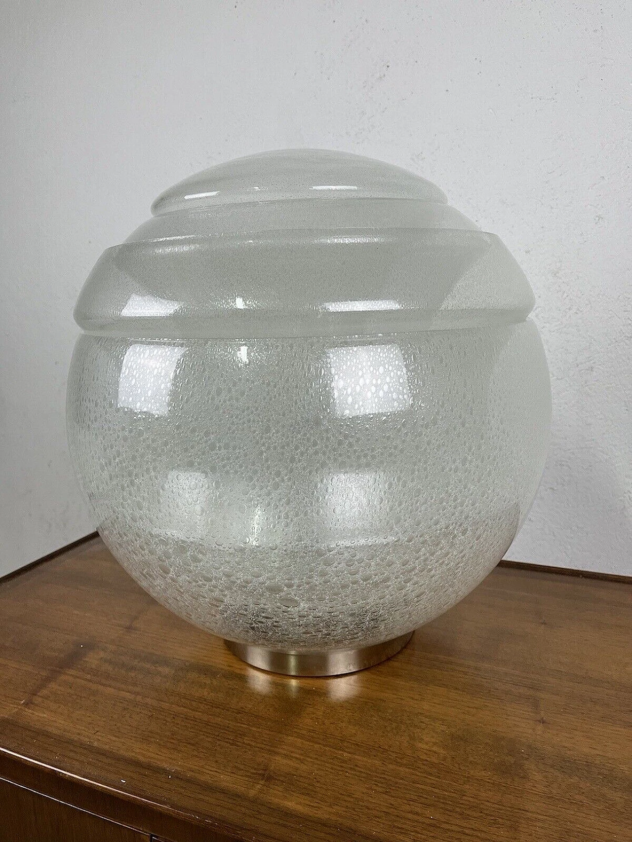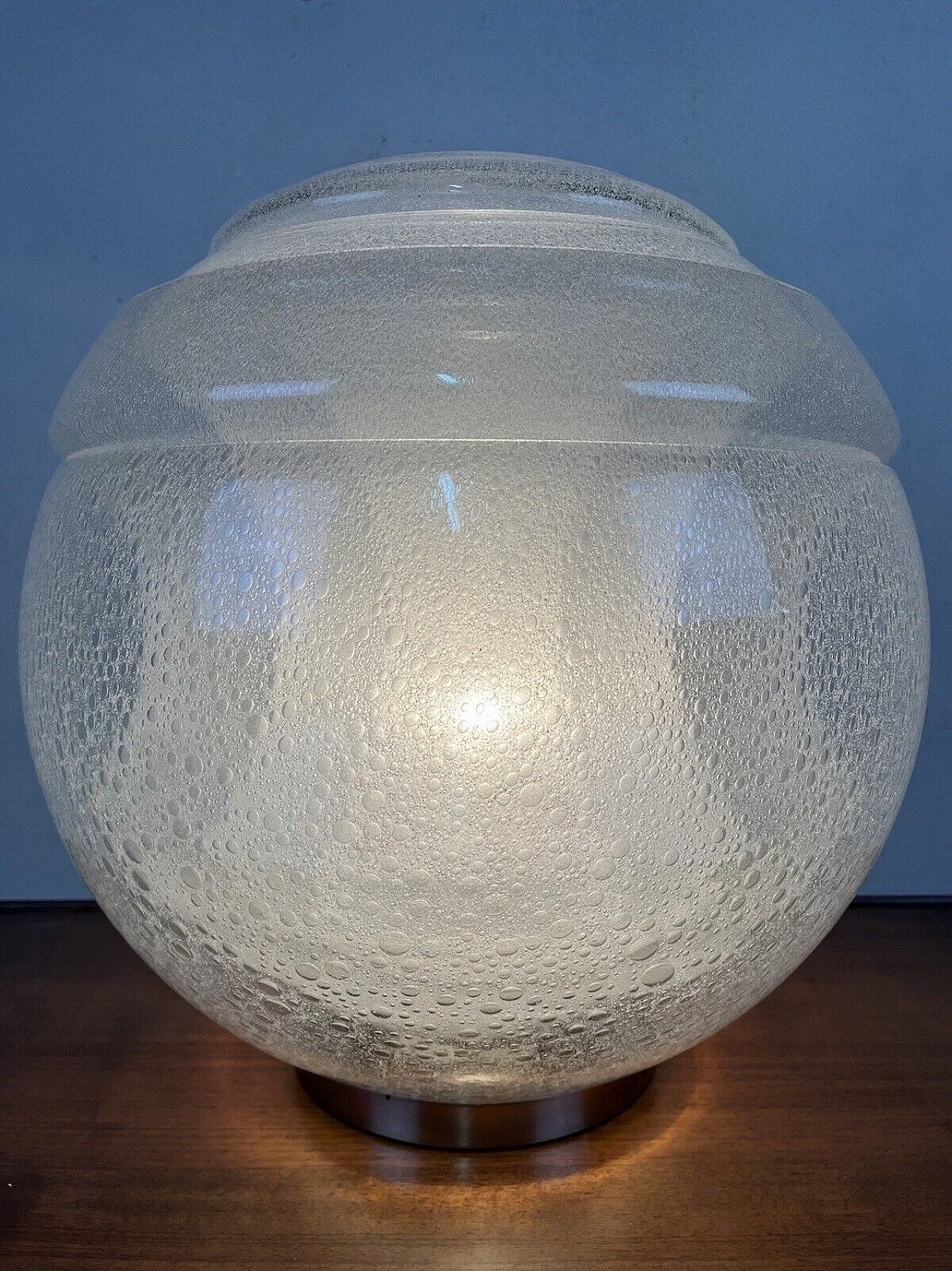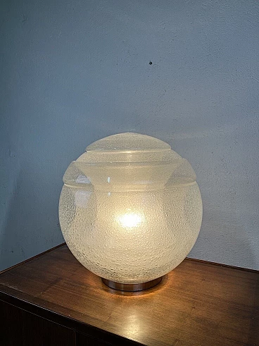 Large table lamp mod. LT328 by Carlo Nason for Mazzega, 1970s. Chromed base and "bullicante" blown Murano glass diffuser. It has been carefully cleaned. It is in excellent condition: the glass is intact, without chips or cracks; there are slight signs on the chromed parts.