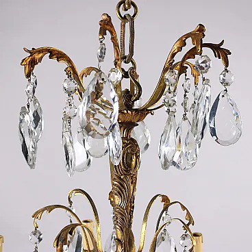 Gilded bronze chandelier with 8 lights, is adorned with glass pendants. Italian production, 20th century.